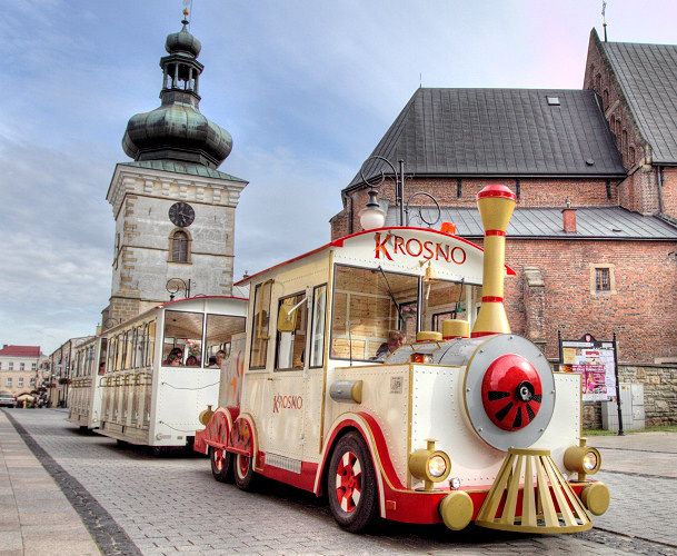 Centrum Dziedzictwa Szkła (Pierwszy w Polsce obiekt turystyczno-kulturalny, który w sposób interaktywny prezentuje zagadnienia, zarówno dotyczące hutnictwa szkła, jak i twórczości szklanej. Zwiedzający mogą podziwiać piękno szklanej sztuki oraz kunszt artystów szkła, ale przede wszystkim poznają tajniki techniki produkcji i zdobienia, w których mogą brać czynny udział) - zwiedzanie Centrum wraz z przewodnikiem oraz warsztaty malowania i zdobienia szkła, możliwość przejażdżki kolejką po zabytkowym rynku Krosna. |